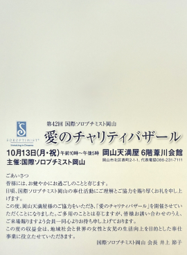 2025年9月25日(木)12:30〜15:30 岡山コンベンションセンター3F コンベンションホールにて開催された研修会に参加いたしました。本研修会では、日本西リジョンチーム中四国9県から理事会・各委員長が集い、ソロプチミストの理念と組織運営に関する理解を深めることを目的に、毎年開催されています。研修の冒頭では、ソロプチミストの活動指針についての説明があり、支援の対象や活動の意義を明確にすることで、個々の行動がぶれることなく、組織としての一体感と継続性を保つことができます。続いて、クラブ内の各役職についての研修が行われました。会長、書記、会計、各委員長など、それぞれの役割と責任について具体的な説明があり、役職者同士の連携がクラブ運営の要であることを再認識しました。また、単なる業務遂行ではなくリーダーシップを育み、クラブの未来を担う重要なステップであるということも学びました。今回の研修を通じて、ソロプチミストとしての方向性を再確認するとともに、役職の意義と責任について深く理解することができました。この学びを今後の活動に活かし、より一層地域社会に貢献できるよう努めてまいります。