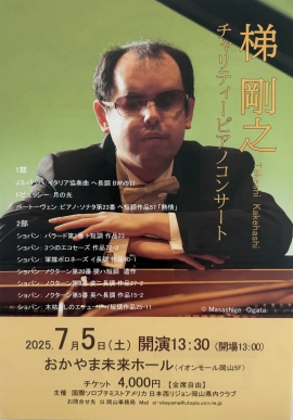 岡山県内クラブ合同「梯剛之 チャリティーピアノコンサート」開催
