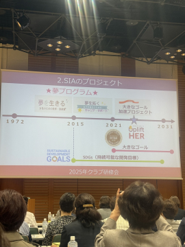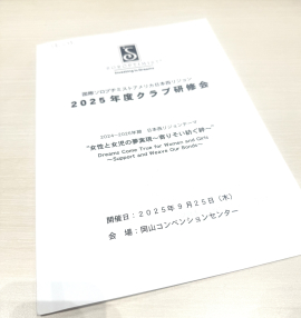 2025年9月25日(木)12:30〜15:30 岡山コンベンションセンター3F コンベンションホールにて開催された研修会に参加いたしました。本研修会では、日本西リジョンチーム中四国9県から理事会・各委員長が集い、ソロプチミストの理念と組織運営に関する理解を深めることを目的に、毎年開催されています。研修の冒頭では、ソロプチミストの活動指針についての説明があり、支援の対象や活動の意義を明確にすることで、個々の行動がぶれることなく、組織としての一体感と継続性を保つことができます。続いて、クラブ内の各役職についての研修が行われました。会長、書記、会計、各委員長など、それぞれの役割と責任について具体的な説明があり、役職者同士の連携がクラブ運営の要であることを再認識しました。また、単なる業務遂行ではなくリーダーシップを育み、クラブの未来を担う重要なステップであるということも学びました。今回の研修を通じて、ソロプチミストとしての方向性を再確認するとともに、役職の意義と責任について深く理解することができました。この学びを今後の活動に活かし、より一層地域社会に貢献できるよう努めてまいります。